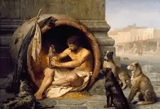 Reclining in the summer breeze, his eyes now closed, Diogenes